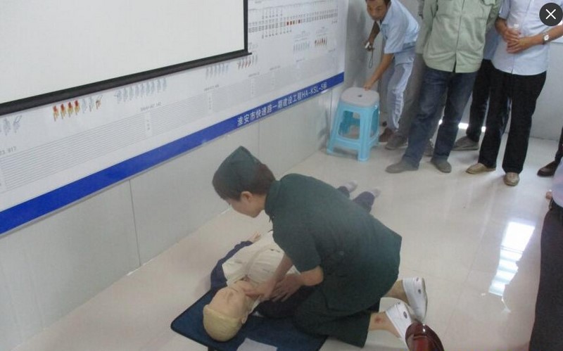 应急救援演练开始前,项目经理部邀请了淮安市八二医院急诊科纪主任为各应急救援小组人员进行现场应急救援常识和注意事项讲解,并现场示范人工呼吸及心脏复苏的操作。
